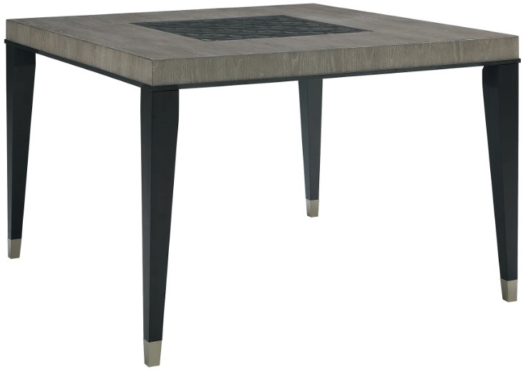 Details are what make this counter-height table something truly special. Sturdy solid wood table legs in luxurious black, tipped with metal, support an attractive square table top with striking gray oak veneers. But what brings the whole piece together is the center inset of black acrylic inlay covered by brushed metal fretwork, making it a piece of art.Read More