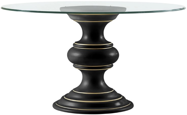 Luscious curves define the Sorento Dining Table. The contours on the black resin pedestal are called out with sleek gold accents. The tempered glass tabletop allows for the beauty of the gorgeous column to shine through.Read More