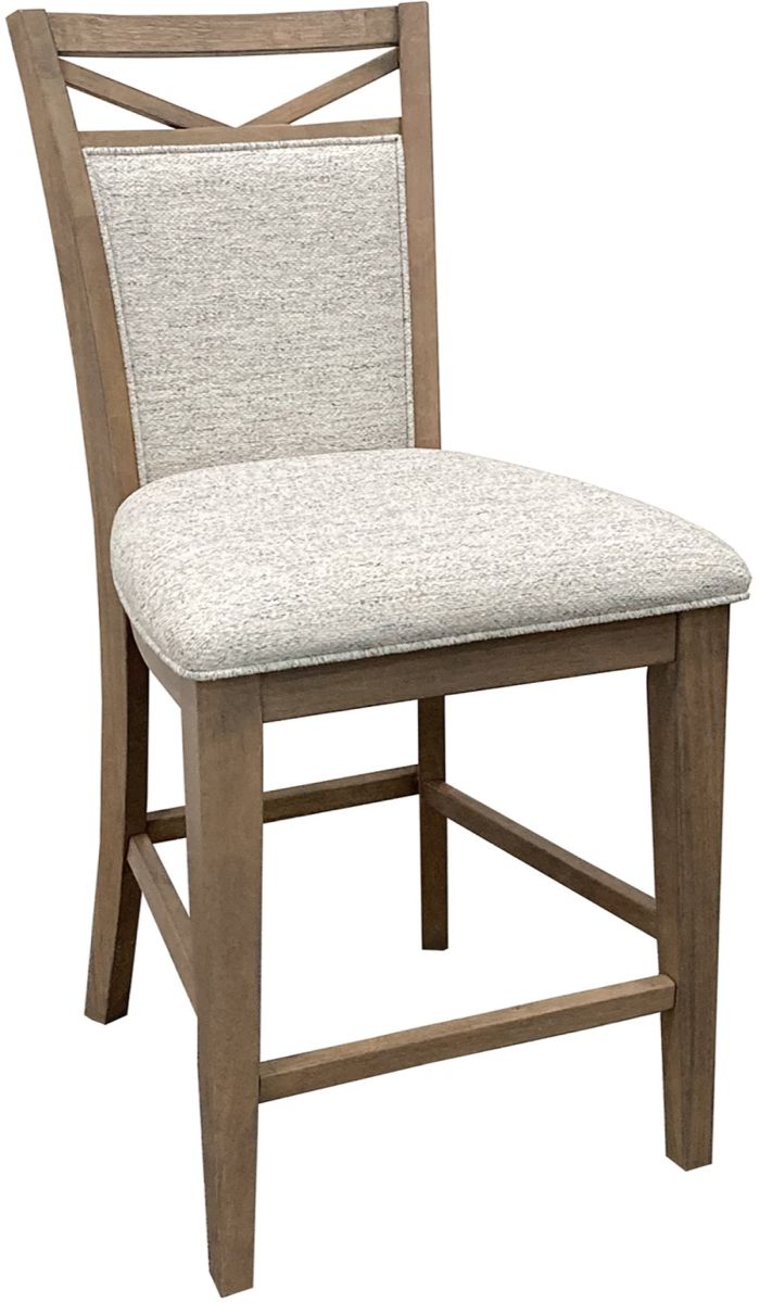 The 2-piece cotton and weathered natural counter chair set features a decorative cut-out, an upholstered back and seat of 100% polyester and tapered legs.Read More