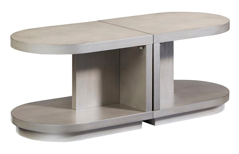 The gorgeous Pearlized Gray finish dresses the group in a soft pearl, almost metallic-like gray color that looks like a million bucks. Features of this round cocktail include a curvilinear shape, drawer storage, casters, and lower base shelving.Read More