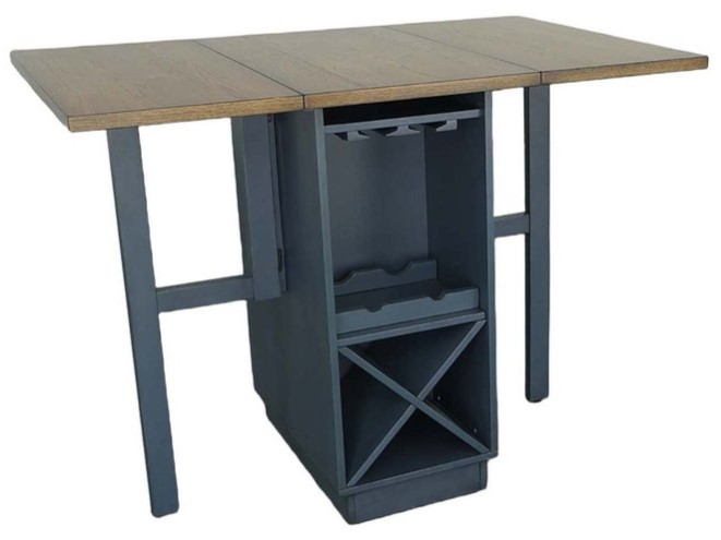 Small, functional, and counter height. It also happens to be the most stylishly fun table on the market. Perfect for a beach house, Airbnb, or just spicing up your own kitchen. A simple clean design with an Oak finished tabletop. Base includes removable shelves with glass & wine bottle storage on both sidesRead More