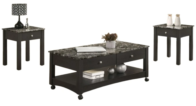 This three piece set comes complete with a cocktail table and two end tables. The cocktail table measures 43 x 22 x 18" high and the end tables measure 18" x 18" x 22" high - just the right size for any room. Assembly is easy with just a phillips screwdriver and about 20 minutes of your time.Read More