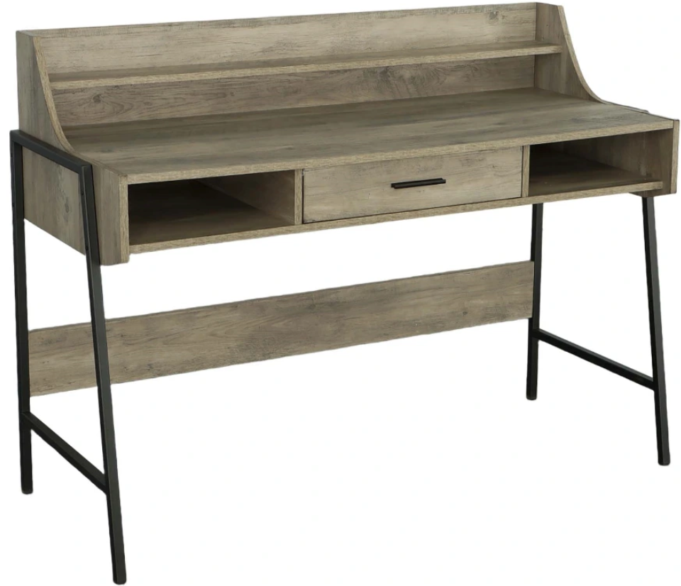 Elevate your workspace with a trendy statement piece that is just as stylish as it is functional. Lighter wood tones with contrasting metal hint at industrial but could easily nod to a mid-century modern or transitional style. Storage compartments and a handy shelf offer easy access to keep things organized.Read More