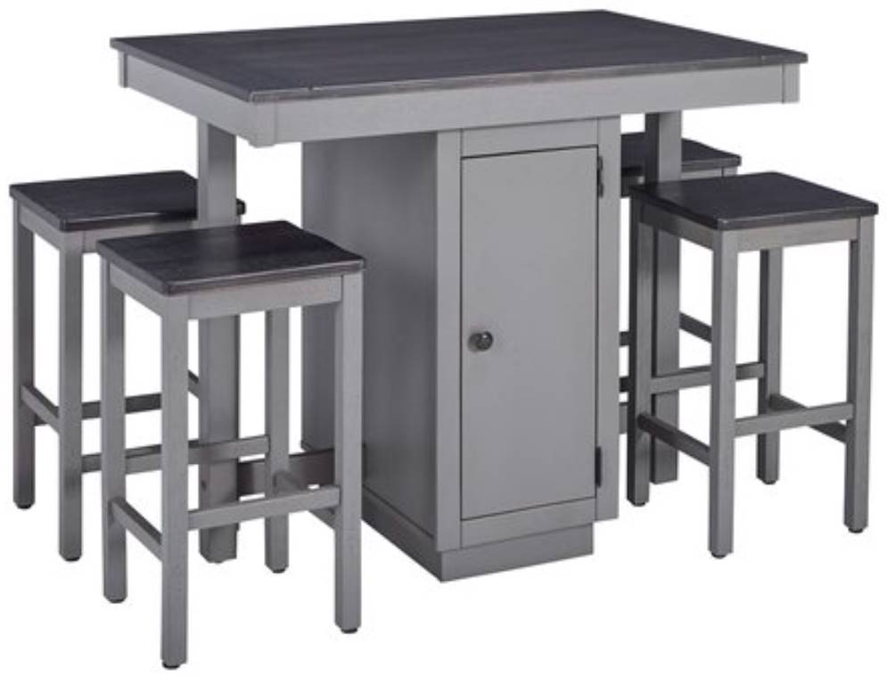 Counter height for more casual spaces. Great for those of us that need the dining space, work space, and just overall space. A transitional design perfect to mix with many different styles. Table and seat tops finished in a dark charcoal color and bases in a light gray slightly weathered texture.Read More