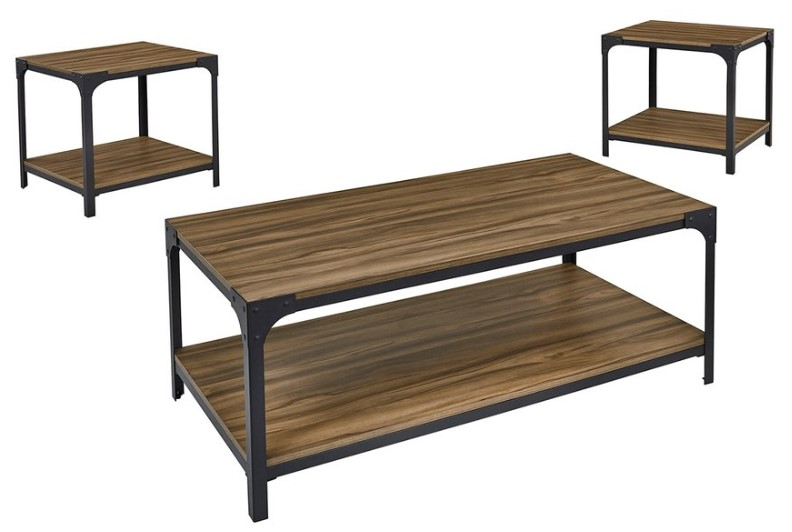 An industrial style table group perfect for your transitional needs. Natural finished table top and bottom shelf in a melamine veneer is durable and easy to maintain. Steel frame/legs in black finish not only look great but are very strong and stable. Full bottom shelf is spacious and perfect for storage and display.Read More
