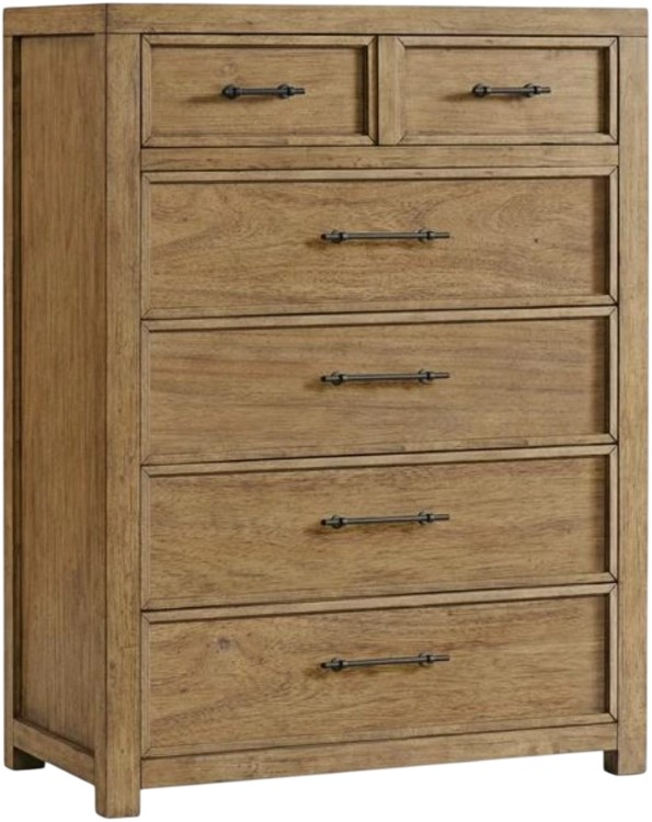 The Riverside Furniture Bozeman 5-drawer chest is a harmonious blend of classic and practical functionality, features a cases have framed drawer fronts and end panels designed to provide ample storage space while adding a touch of natural beauty to your bedroom.Read More