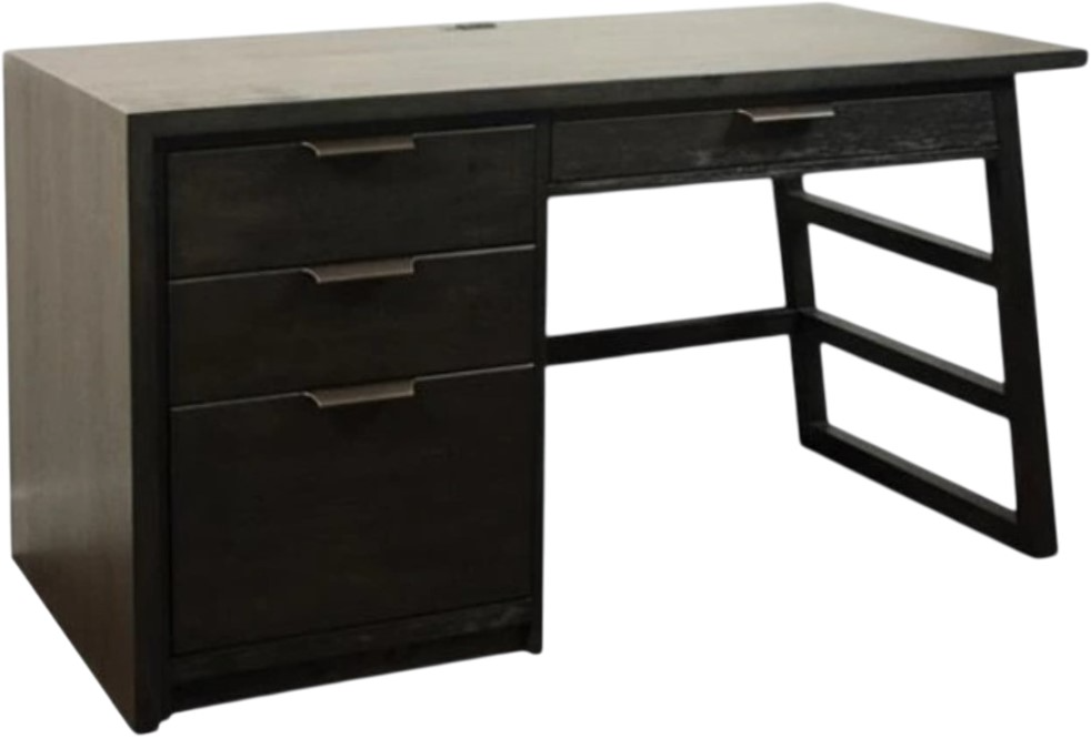 Enhance your office space with the Perspectives Single Pedestal Desk, a perfect blend of style and utility. Crafted from hardwood solids and acacia veneer, this desk showcases a striking ebonized acacia finish that adds a touch of chic sophistication to your office room.Read More