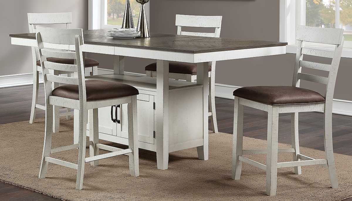 The Standard Furniture Two-Tone Counter Height Dining Table features a shelf and 2 doors for additional storage. Finished in a beautiful two-tone finish, this piece will look amazing in any dining room.