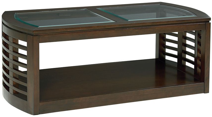 Urban and edgy, Accolade Cocktail Table has interesting geometric elements with their curved ladder ends paired up with a dark mink stain. Pair it with the matching Accolade Console Table and End Table to complete the look.