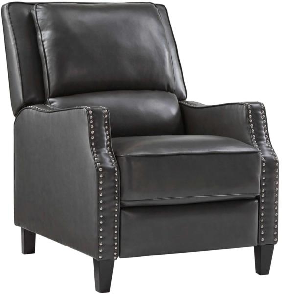 Sophistication and style, Alston Push-back Recliner has slender knee cut arms trimmed in nailhead with a wing style that is sure to elevate the level of style in any space.