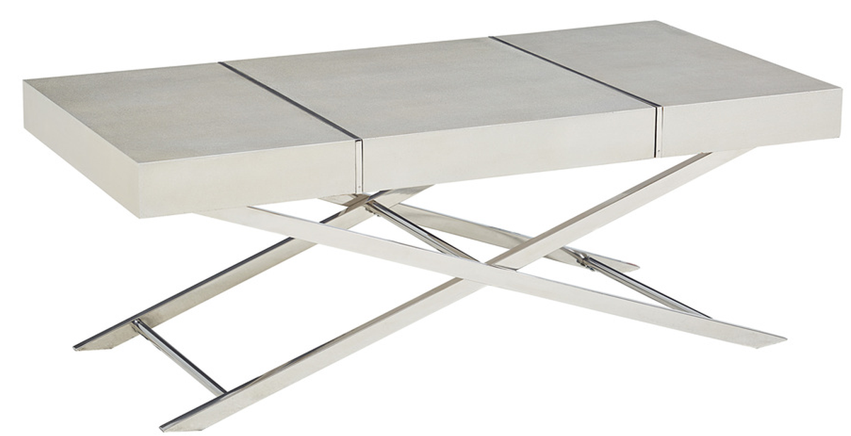 Cutting edge Ava Silver Cocktail Tables have a bold modern geometry with striking stainless steel X-bases and silvery textured tops accented with slender metal strips.Read More