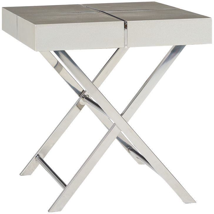Cutting edge Ava Silver End Tables have a bold modern geometry with striking stainless steel X-bases and silvery textured tops accented with slender metal strips.Read More