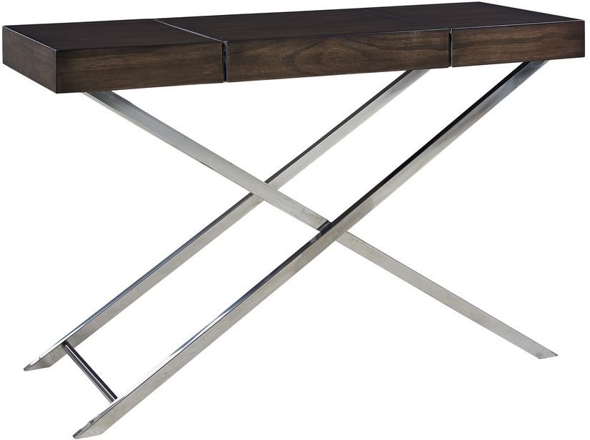 The cutting edge Ava Console Table has an edgy modern geometry, with striking stainless steel X-bases and smoky brown tops accented with slender metal strips.Read More
