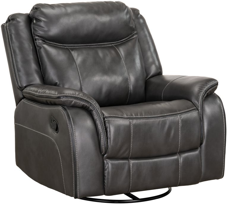 Power motion recliner pillow arm. Swivel base. Power reclining with power button available in chocolate color