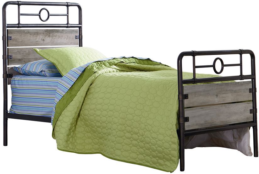 Barnett Youth Bedroom has a rustic industrial mood that works great for guys. It comes in a great looking distressed pine color finish with metal pipe elements in a black bronze color.
