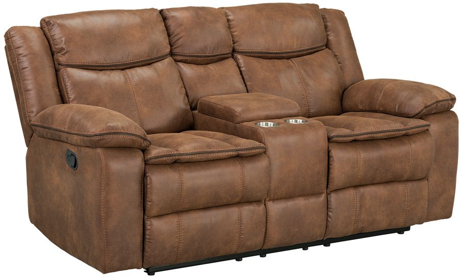 Manual motion recliner with manual pull tab. Pillow arm with padded plush and back for all day comfort makes this a wonderful addition to your living room. Matching recliner and sofa also available to complete the living room collection.