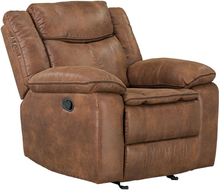Manual motion recliner with manual pull tab. Pillow arm with padded plush and back for all day comfort makes this a wonderful addition to your living room. Matching loveseat and sofa also available to complete the living room collection.