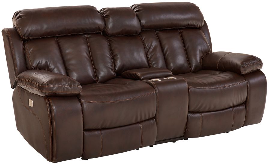 Boldly stated with its elevated power headrest and a deep channeled back, Bowmen Power Motion Loveseat welcomes you home and embraces you in comfort at the end of the day. Notice its drop down console feature for storage and beverages.