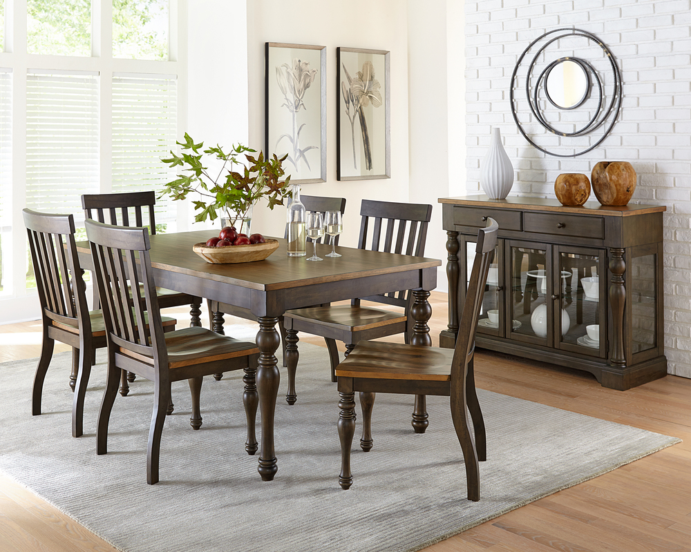 Dunmore Dining’s classically designed features of farmhouse turned legs and two-tone finish, create a warm inviting dining experience with your family and friends.