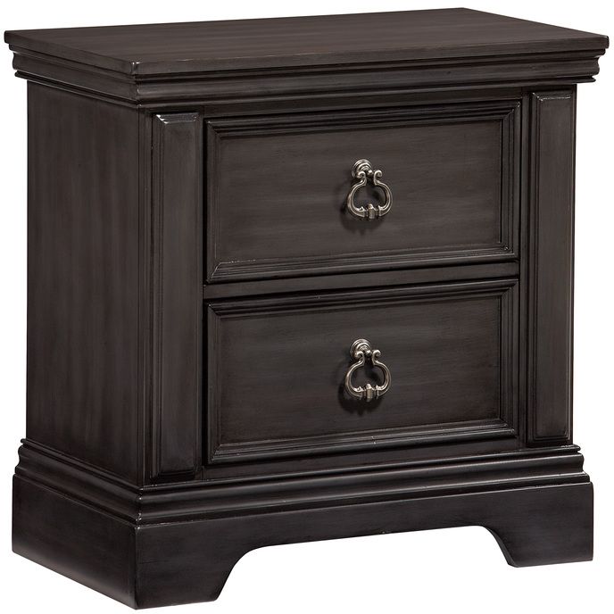 Dentil, cove and ogee moldings. Raised bead frames on drawer fronts and bed panels. Grey finish with satin nickel hardware.Read More