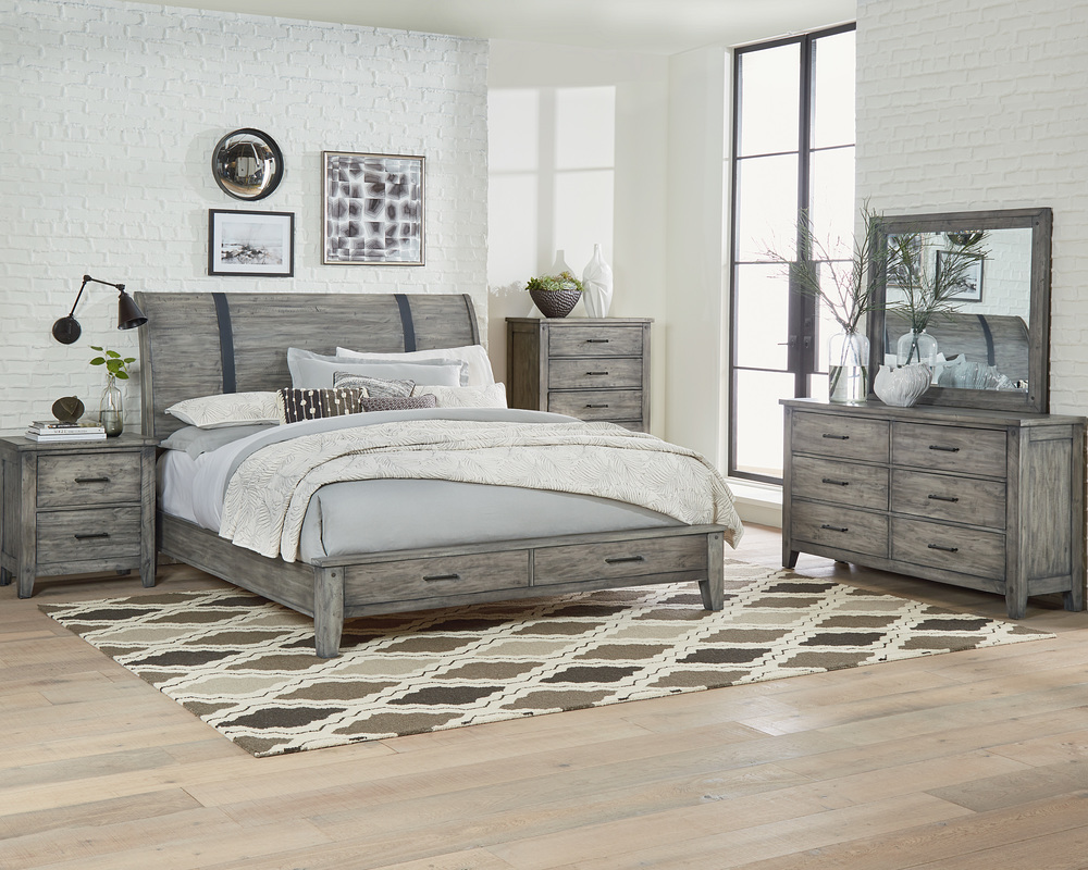 Set Included King Storage Bed, Dresser, Mirror & Nightstand.
