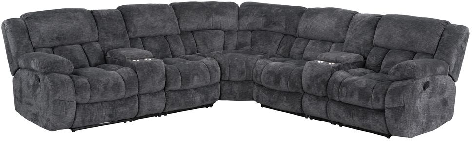 6 Piece sectional featuring pillow arm with flip top storage, convenience cup holders , padded chaise seat for all day comfort. Manual pull tab locate on the side for easy reach. Available in chocolate or charcoal color.