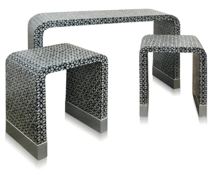 Made of Blue & Gray Mother of Pearl Mosaic on Steam Bent Plywood