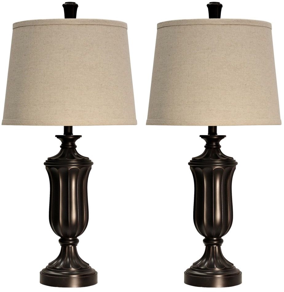StyleCraft Pair of Madison Bronze Injection Molded Table Lamps with complimentary hardback shades and brown cordRead More