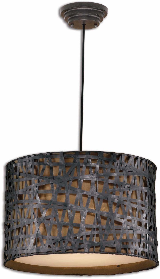 Straps of metal finished in a rust black with aged silver undertones and a silken bronze fabric liner.
